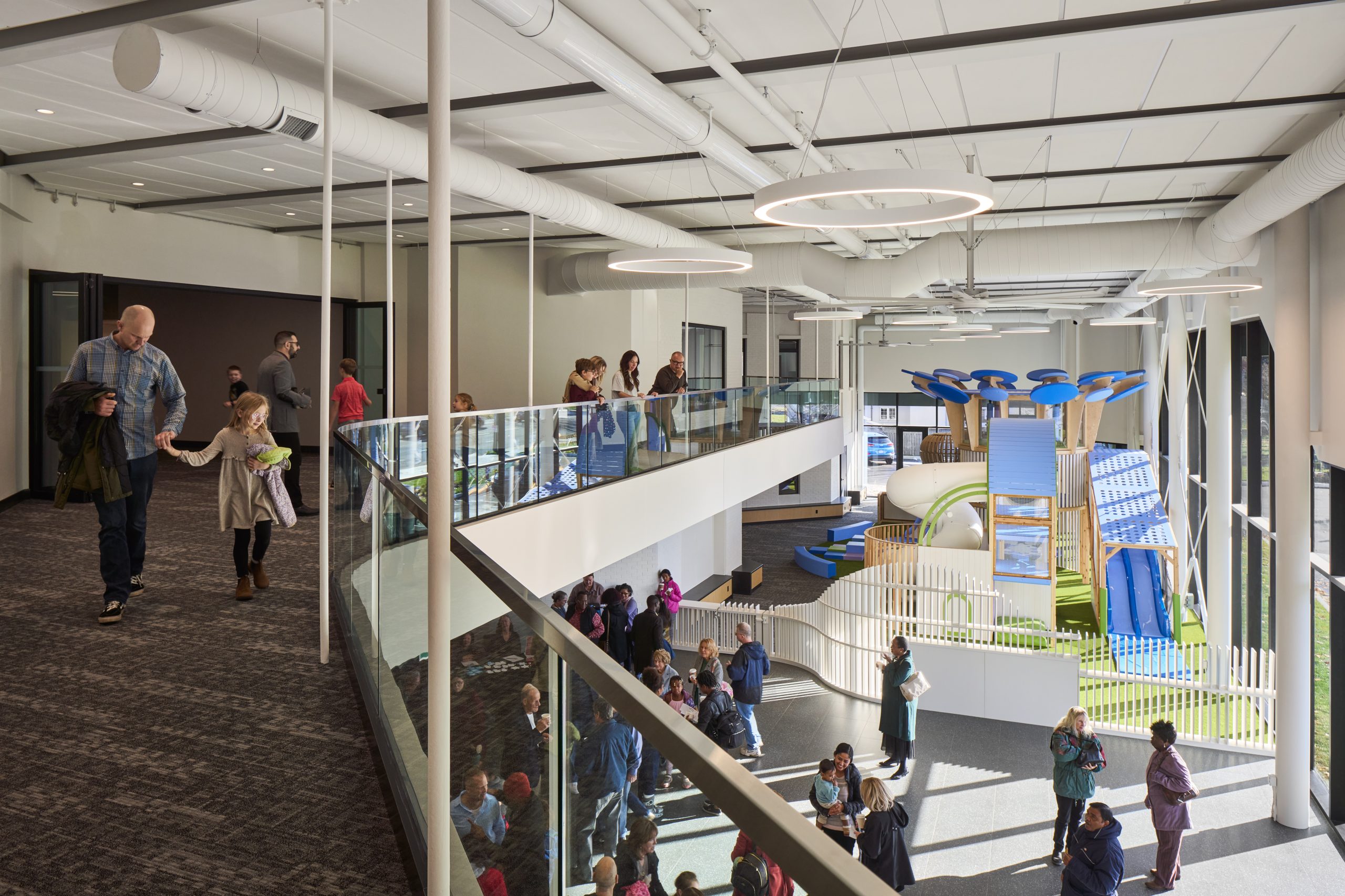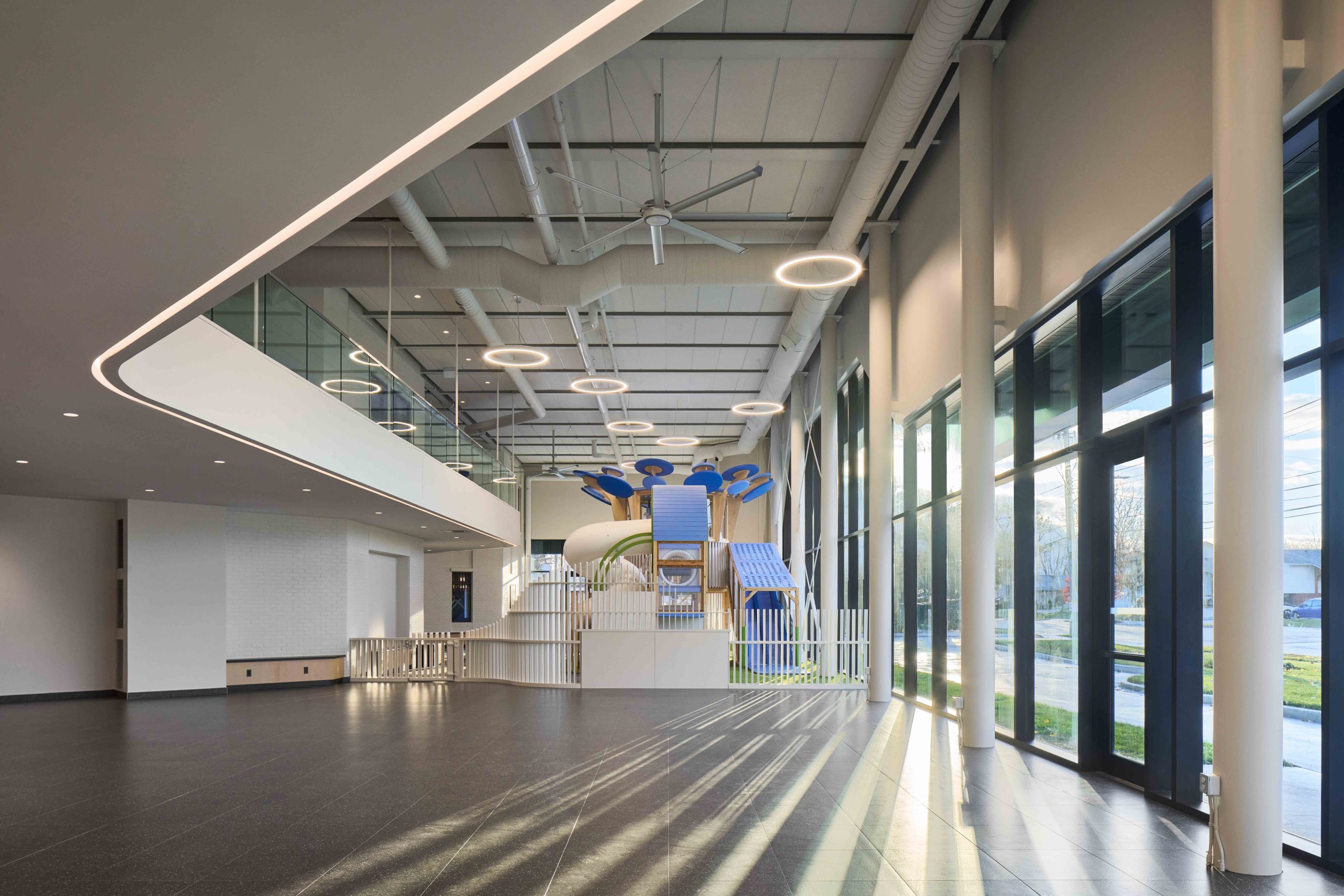 Key aspects of the renovation include the addition of a sensory room tailored for children with diverse needs, a new 2,500 square foot children’s area featuring distinct play zones for various age groups, and the incorporation of an elevator to ensure overall accessibility, especially for the daycare facilities located on the second floor.