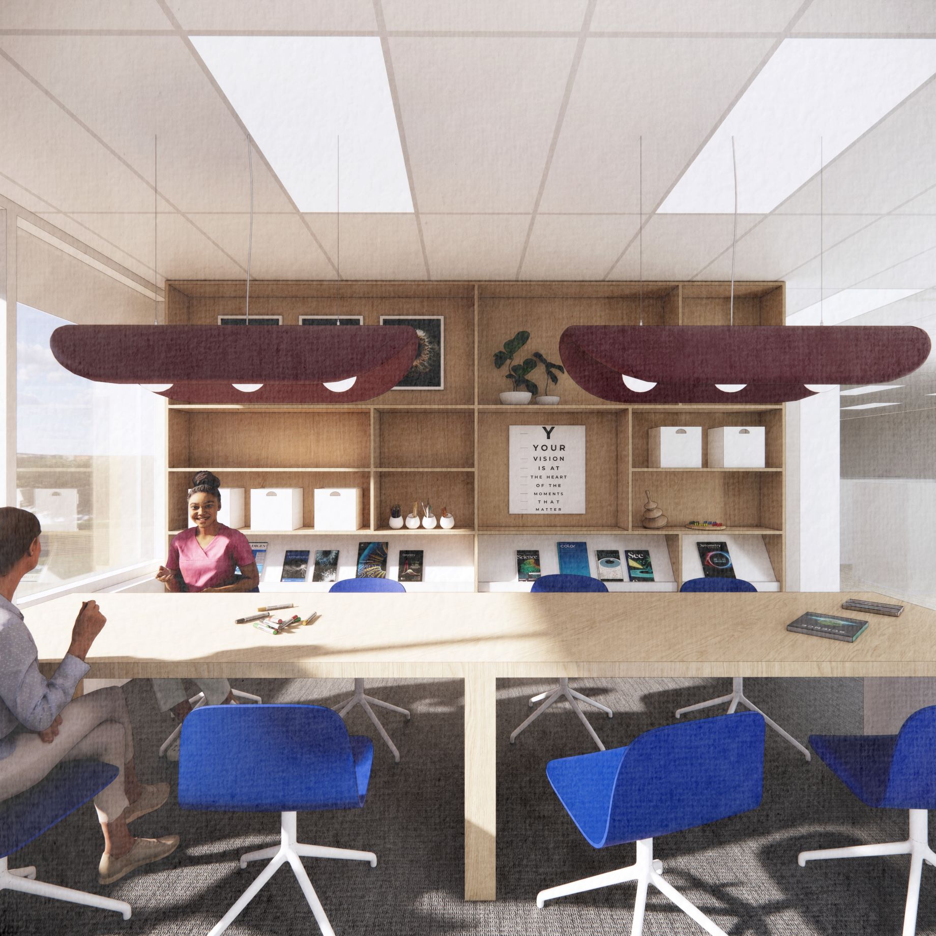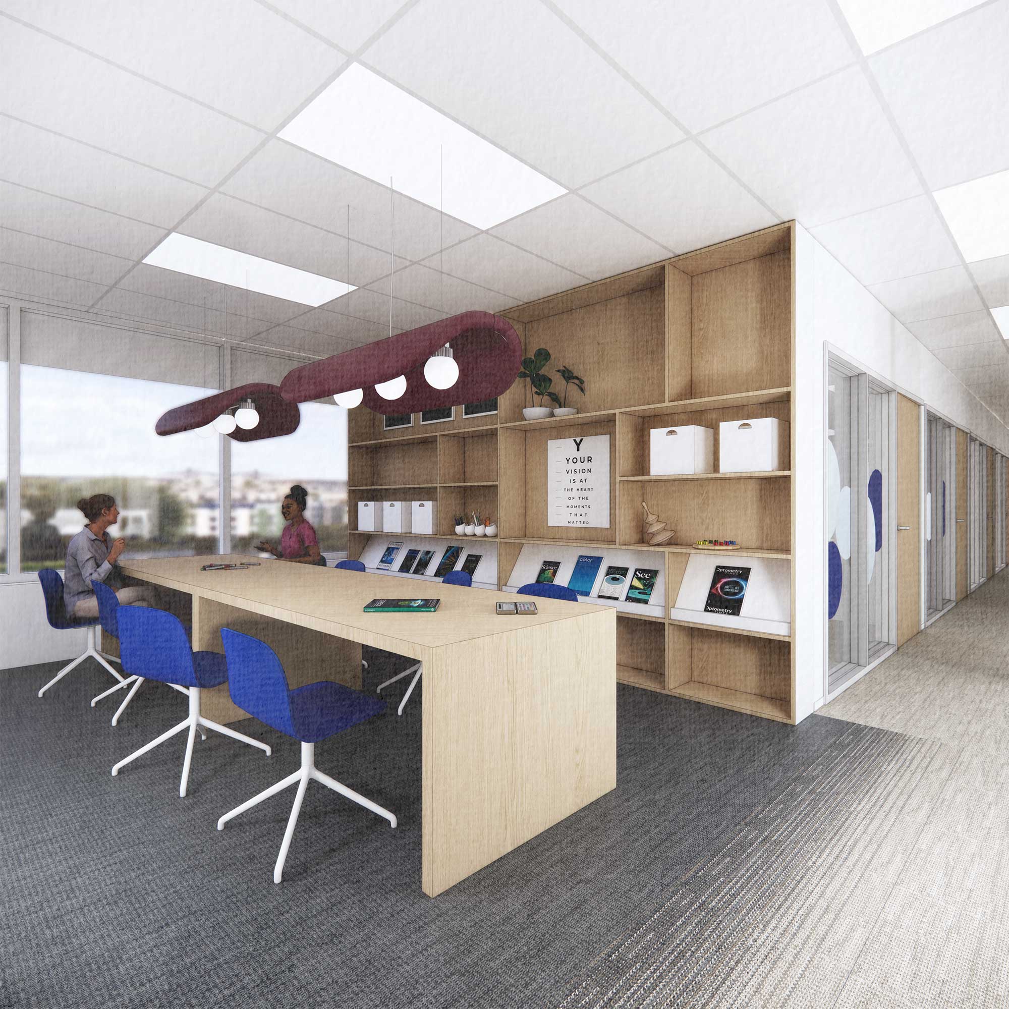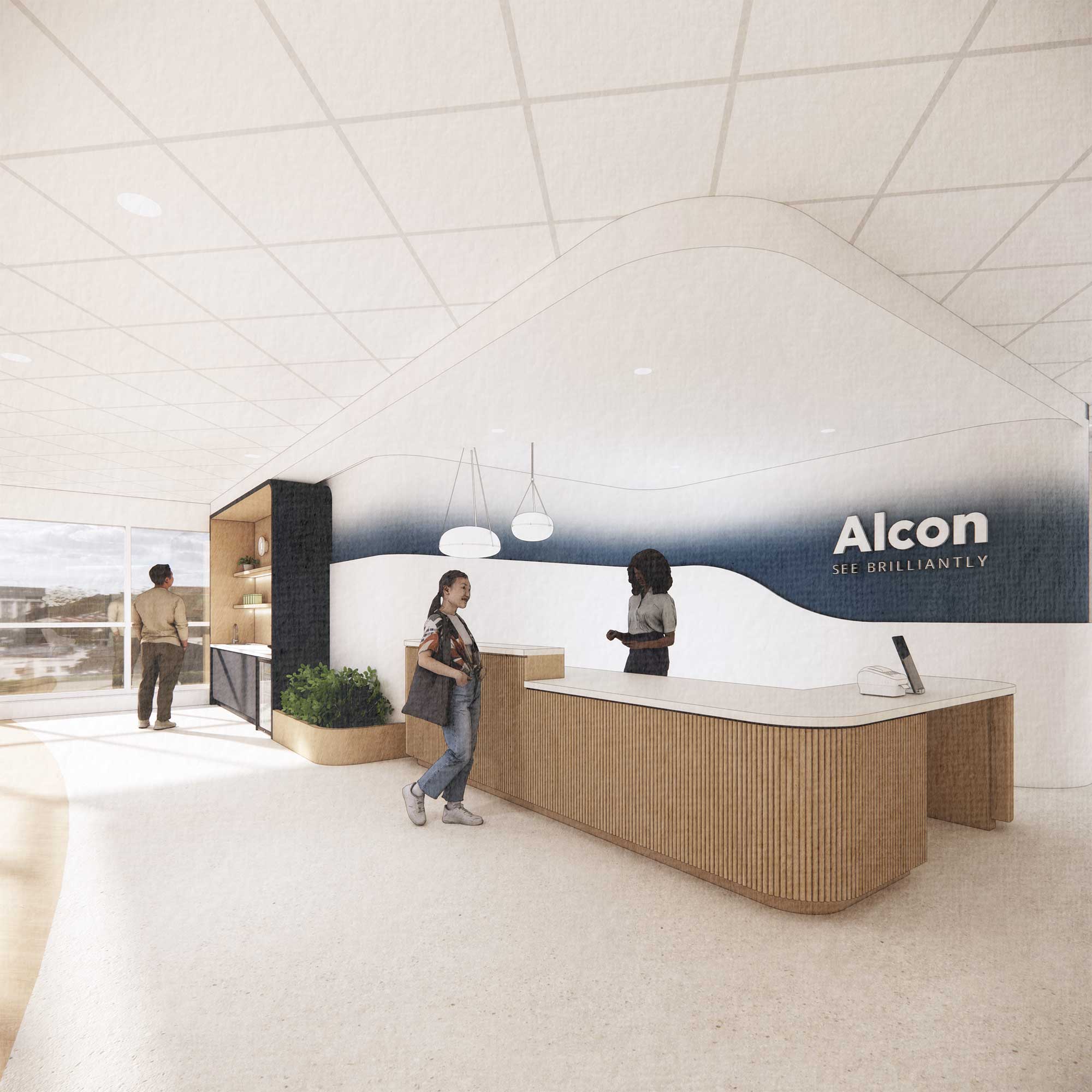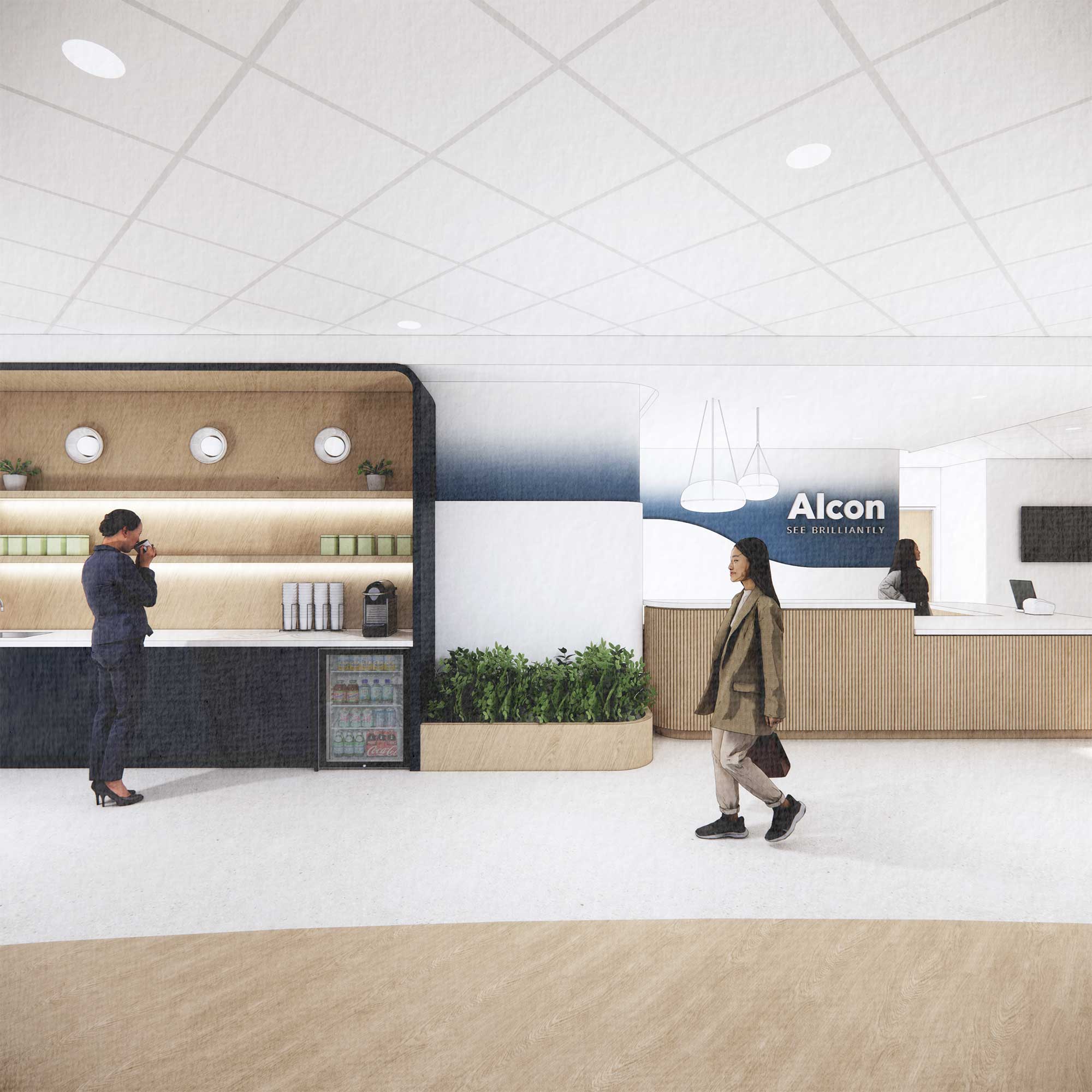 The DPAI Interior Design team has worked closely with Alcon to ensure all design decisions align with the company’s global branding and workplace guidelines, creating an office environment that is consistent with Alcon workplaces in other countries.