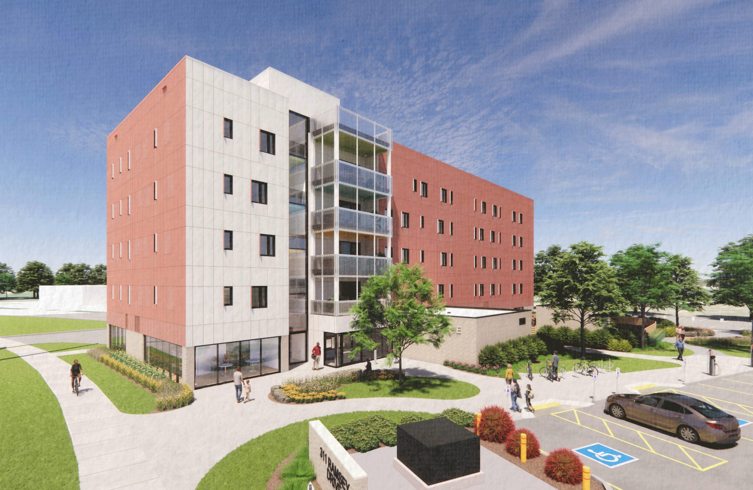 DPAI has been engaged by Flourish and Haldimand Norfolk Housing Corporation (HNHC) to design a 56-unit mixed-use affordable housing development in Dunnville, Ontario. The project includes 25% RGI units, 50% affordable units, and 25% market rate units, with 20% of all units being accessible by design.