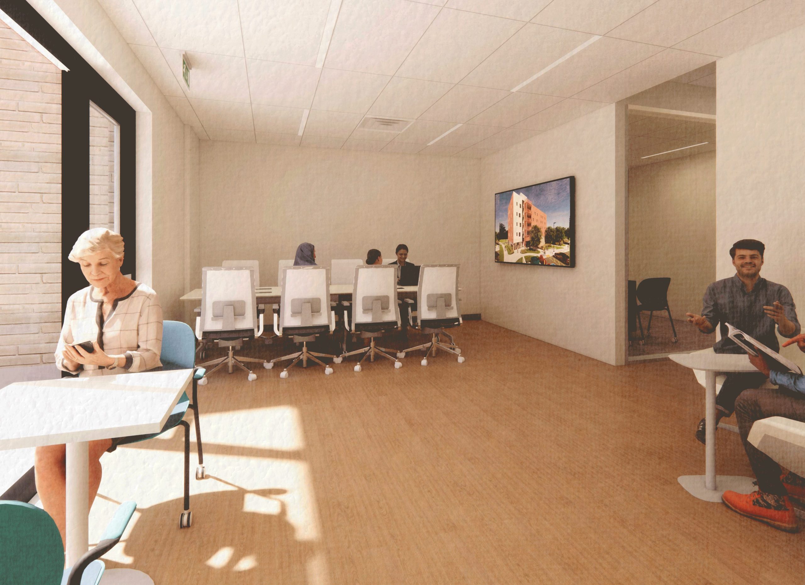 Everyday spaces were also designed with care; the ground-floor laundry room is filled with natural light and provides a comfortable place for residents to gather and connect.